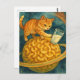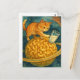 A cute ginger kitty pushes a glass of milk off a planet made from cheesy noodles and Saturn like rings fantasy art