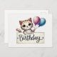 Celebrate someone's special day with this charming birthday card featuring a cute kitten holding colorful balloons and a "Happy Birthday" sign. Perfect for cat lovers and anyone who enjoys a touch of whimsy on their birthday. This card brings joy and smiles with its delightful design.