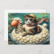 A funny cute cat rides on an inflatable sheep floatie as it explores the river as fish swim around below AI generated art