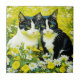 Adorable Cats sitting in a field of Daisies Ceramic Tile