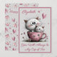 Celebrate love, warmth, and appreciation with this adorable cat-themed Celebrate love, warmth, and appreciation with this adorable cat-themed Valentines Day greeting card featuring a charming illustration of a fluffy mama cat and her kitten cozily nestled inside a delicate floral teacup. Surrounded by soft pink hearts and sweet blossoms, the design pairs perfectly with the heartfelt message of "You Will Always Be My Cup of Tea.” This whimsical, storybook-style artwork captures the special bond between two people, making it a touching way to express love, gratitude, and affection. Ideal for cat lovers, kawaii art fans, and anyone looking for a unique and adorable Valentine’s card, this sweet design turns a simple greeting into a meaningful expression of love.