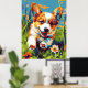 Bring a touch of cuteness to your space with this delightful poster featuring a chibi-style corgi puppy frolicking in a garden. Perfect for animal lovers, this charming design is sure to brighten up any room. Ideal for a child's bedroom, nursery, or anyone who adores these fluffy companions. Get your paws on this playful poster today!