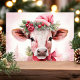 Adorable Christmas Cow in Santa Hat Holiday Card