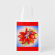 adorable Christmas elf in a poinsettia print Grocery Bag