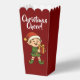 An adorable Christmas elf in green outfit and red hat, holding a gift box with a cheerful smile. Perfect for wrapping paper, holiday gift, seasonal collections, Christmas products, supplies and gifts.