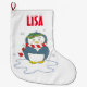 Our adorable little Christmas Penguin, on these awesome Christmas stockings. Names can be personalized. Click customize to change background color if you wish.