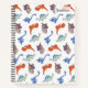 This full size spiral notebook can be personalized and customized with your name or text on the cover and your choice of several page designs inside. Works well as a journal, diary, planner, notebook, or sketch pad for all kinds of writing, thoughts, doodles, sketches, lists, drawings, notes, and more. Great for home, school, work, or just for fun. This design features an array of cute colorful cartoon dinosaurs in orange blue and purple colors.