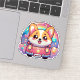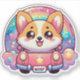 Adorable Corgi in Pink Car Rainbow and Sparkles Sticker