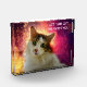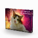 Portrait of a cute and adorable calico cat with green eyes, pink nose, and multicolor fluffy fur. The beautiful pet looks straight into your eyes. A digital painting from a photograph. Elegant and funny rectangle acrylic award for anyone. Customizable. You can change the image. You can use the image of your own cat instead of the template image if you wish. You can change or delete the template text LET THE CAT BE WITH YOU. You can transfer this design to a variety of other products of your choice. Please, use the "Edit Design" or the "Personalize" (as the case may be) button to adjust the picture to the shape of the particular product. It will transfer you to the Designer Tool. Use the "Fit/Fill" option (right-side menu of the Designer Tool). You can scale, rotate, flip the image on the product template, and you can add some text of your own to it. You can also change the type, size, color, and location of the font. Just be creative, buy one, have fun, and be happy!