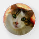 Portrait of a cute and adorable calico cat with green eyes, pink nose, and multicolor fluffy fur. The beautiful pet looks straight into your eyes. A digital painting from a photograph. Elegant and funny paperweight for anyone. Customizable. You can change the image. You can use the image of your own cat instead of the template image if you wish. You can transfer this design to a variety of other products of your choice. Please, use the "Edit Design" or the "Personalize" (as the case may be) button to adjust the picture to the shape of the particular product. It will transfer you to the Designer Tool. Use the "Fit/Fill" option (right-side menu of the Designer Tool). You can scale, rotate, flip the image on the product template, and you can add some text of your own to it. Just be creative, buy one, have fun, and be happy!