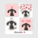 An assortment of cute Dachshund stickers with hearts and “Be Mine.” Sweet dog stickers for Valentine’s Day or just for fun. These funny wiener dog vinyl decals are waterproof and scratch resistant. Great for water bottles, notebooks, laptop computers, and any smooth surface indoor or outdoor. Visit Jenn’s Doodle World for even more fun products featuring this cute cartoon Doxie design.