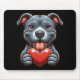Adorable Dog Embracing Heart with Happy Expression Mouse Pad