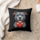 Adorable Dog Embracing Heart with Happy Expression Throw Pillow