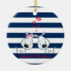 Adorable Dogs In Love on Striped-Personalized Ceramic Ornament