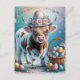 Adorable Easter Brown Spotted Highland Cow Postcard