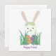 Celebrate Easter with this charming greeting card featuring a cute white bunny wearing a floral crown, surrounded by decorated Easter eggs and lush spring grass. The pastel color palette and delightful design create a warm and festive touch, perfect for sending heartfelt Easter wishes to family and friends. Whether for kids or adults, this card adds a joyful and whimsical element to any Easter celebration.