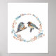 The original artwork for this print is a watercolor and colored pencil painting of an adorable eastern bluebird couple surrounded by a floral wreath. Artwork from Michigan artist Jennifer Steffen.