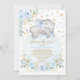 Adorable Elephant Blue Gold Baby Shower By Mail Invitation