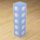 A beautiful lightly spreckled baby blue gift box with adorable white baby elephants with playfully lifted trunks and feet. Great for baby showers and new parents - well suited for bottles of milk and healthy juices as well as for wine and the like.