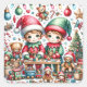 Adorable Elves in Santa's Workshop Christmas Square Sticker