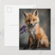 Adorable Fox Kit Holding Lavender Flowers Holiday Postcard