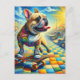 Adorable French Bulldog Skateboarding Colorful Postcard