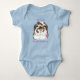 I love this onesie, it's adorable! The material is amazing so soft and the color is a perfect sky blue. When my daughter-in asked me to help with her Baby Shower, I was thrilled. It was co-ed & the theme was Cookie Monster. I had no idea that the whole world was after that big blue Monster. Thank goodness for Zazzle, I got most of the party supplies here. Then I found this onesie! They made my customization so easy. The colors are awesome. I wrote the word "Loved" across the bottom of the Cookie Monster in red letters when I was putting it together. I saw the preview & liked it. But to see it in person, OH, it was fantastic, they do exceptional work! I am so glad that I found this onesie/bodysuit. The production time and shipping were exactly what I was told, which made it easy to plan the party. Packaging was nice as well. If you are looking at this product, look no further, I highly recommend it! I'm certain that I'll be back to "design" whatever my new Grandson "needs.". The printing on the onesie/bodysuit is crisp, and clean. With perfect colors that blend well with the blue background of the basic material. We are so happy with how it came out.