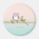 A modern girly and cute design of cartoon owl on pink and blue background with lace.
