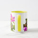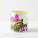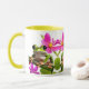 Adorable Green Frog Surrounded by Pink Flowers Mug