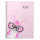 Adorable Hand Drawn Nerdy Cat Art Pink Note Book