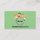 Are you looking for the cutest babysitting business cards out there? How about this fun light green color background babysitting service business card with four happy kids around a circle that has your name and title inside? The phone number is at the bottom and your email goes on the other side.