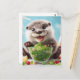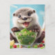 Adorable Happy Otter Making a Salad Postcard