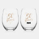 Glass 2: Front design is the same as glass 1 except the image below wording is of a black bowtie. Reverse features the customizable text which reads, "and still going strong!"
