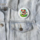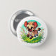 A vibrant button featuring a cute, cartoon hyena cub. The cub has a playful expression, with spots on its fur and a tuft of hair on its head. It is depicted bounding joyfully through a field of tall, green grass. There's a clear blue sky above and some wheat stalks swaying in the breeze. The overall tone of the image is playful and energetic.