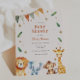 Fun baby shower invitation featuring watercolor cute baby jungle animals. Personalize with your information or click "Click to customize further" to edit font styles, size and colors.