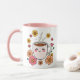 A cute little Kawaii cartoon mug of coffee surrounded by yellow and pink flowers. Start your morning out with this cuteness.