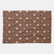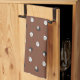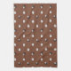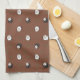 Kitchen towel showing a cute sheep or lamb pattern on brown background. The pattern includes adorable white lambs and black lambs, as well as tiny green grass bundles in between.