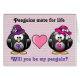 Two adorable penguins with pink heart and light pink stripes. I drew a purple hat with flower for the one on the left, and a hot pink hat with ribbon for the one on the right. Replace the sample text with your own words for a unique gift. Makes a wonderful gift for a lesbian couple, gender neutral or gay wedding ceremony, proposal, engagement, anniversary, as well as baby birth or adoption.