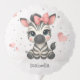 Cute birthday balloon featuring adorable little female zebra wearing a cute pink bow with some love hearts
