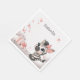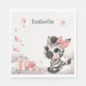 Cute baby shower or birthday paper napkin featuring adorable little female zebra wearing a cute pink bow sitting on the clouds with some love hearts