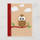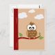 A postcard of a cute owl sitting on a tree with clouds in the background. The design is colorful and simply adorable.