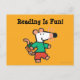 Maisy is all smiles as she holds her library book. This illustration from the book "Maisy Goes to the Library" (written by Lucy Cousins and published by Candlewick Press) shows the classic, adorable white mouse happily carrying her new book home!
