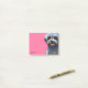 Lovely personalized post it notes for dog lovers. The design features a cute illustration of a Malteze and Poodle mix pup placed on the right side and a coral pink background for writing on it. A custom name is placed in the lower left corner and printed in a cheerful small print. To remove it, just leave the space blank in the personalize it name field.