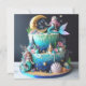 CUTE MERMAID THEMED KIDS BIRTHDAY LAYER CAKE ON THE FRONT OF THE CARD. COMPLETELY EDITABLE COPY ON THE BACK.