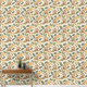 Perfect for a baby nursery or toddler's bedroom, this wallpaper has cute images of long tailed brown monkeys in a pattern. Along with the animal images are gold and green tropical leaves. Everything is placed on a cream background.