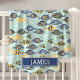 Adorable Navy Blue Nautical Ocean Fish Monogrammed Swaddle Blanket
