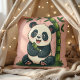 Adorable Panda Hugging Bamboo Cute Cartoon Art Throw Pillow