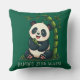 Adorable Panda Hugging Bamboo Cute Cartoon Green Throw Pillow