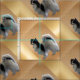 This is a fun pattern with a cute Papillon dog on various shades of gold, bronze and brown. The dark and light patterns make an optical illusion of depth so it looks like the Papillion dog is standing on stair steps.