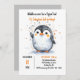Adorable Penguin and Festive Orange Brown Confetti Invitation